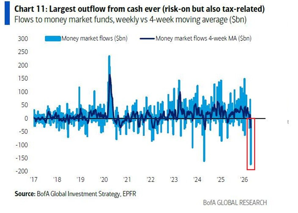 JUST IN: Money market funds posted -$172.2 billion in outflows last week, the largest weekly drawdown on record.