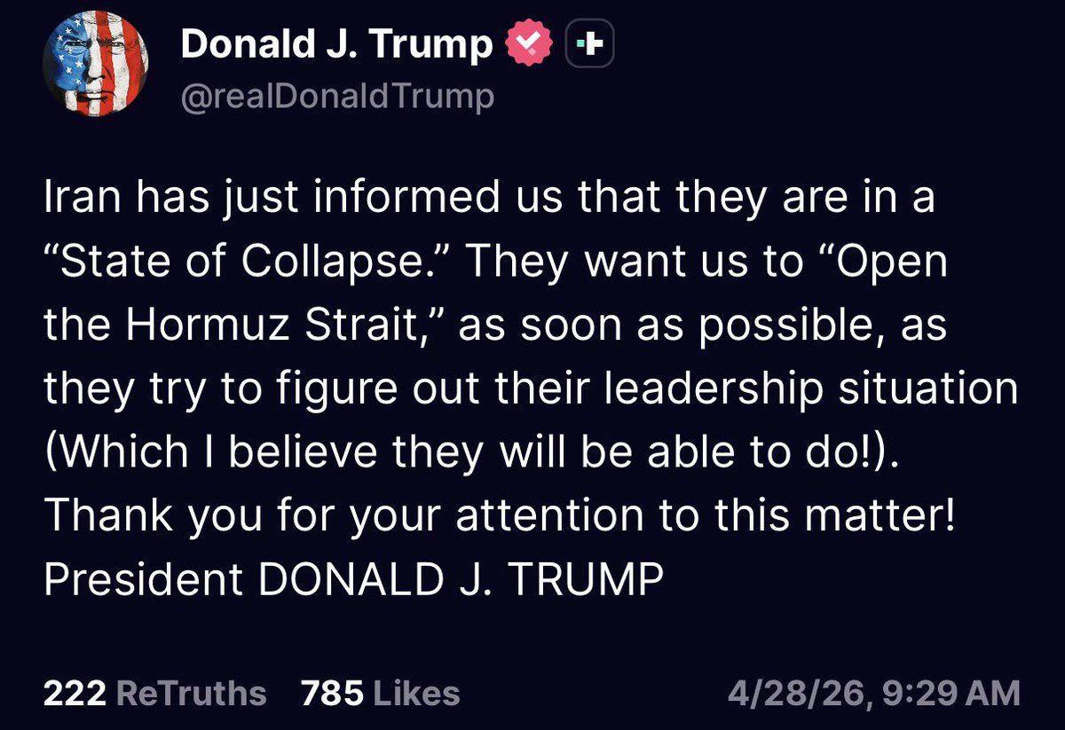 JUST IN: President Trump releases a statement on Iran as US oil prices rise above $100/barrel.