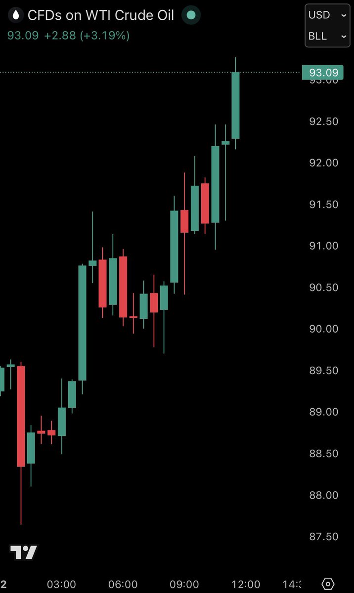 JUST IN: US oil prices rise above $93/barrel after Iran says they have “no plans” to attend peace talks with the US on Friday.